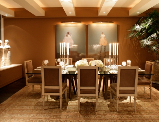 Our goal was to create an elegant room that was neither contemporary nor traditional in style. It was to be a place that one could linger and feel grounded in, despite living 52 floors above the San Francisco Bay. A beautiful collection of carefully curated art, beautifully lighted by Randall Whitehead, enhances the timeless feel of this space. Note the hypnotic diptych by Bay Area figurative artist Marianne Kolb. (2009)